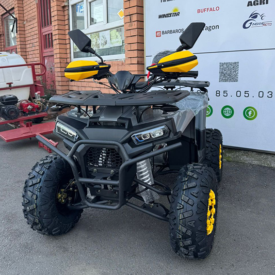 ელექტრო სტარტერი, დისკური მუხრუჭები და ჰიდრავლიკური უკანა საკიდარი ქმნის კომფორტულ, უსაფრთხო და დინამიურ მართვის გამოცდილებას. დიდი ზომის საბურავები (წინა – 19×7-8, უკანა – 18×9.5-8) უზრუნველყოფენ გამორჩეულ მდგრადობას და ადაპტირებადობას სხვადასხვა ზედაპირზე.