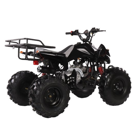 საბავშვო კვადროციკლი 125CC შავი ფერის | 4-ტაქტიანი ავტომატური ძრავით და დისკური მუხრუჭებით (მოდელი KM125-03) გამძლე, სტაბილური და ელეგანტური მოდელია, რომელიც აერთიანებს მძლავრ ტექნიკას და დახვეწილ დიზაინს.